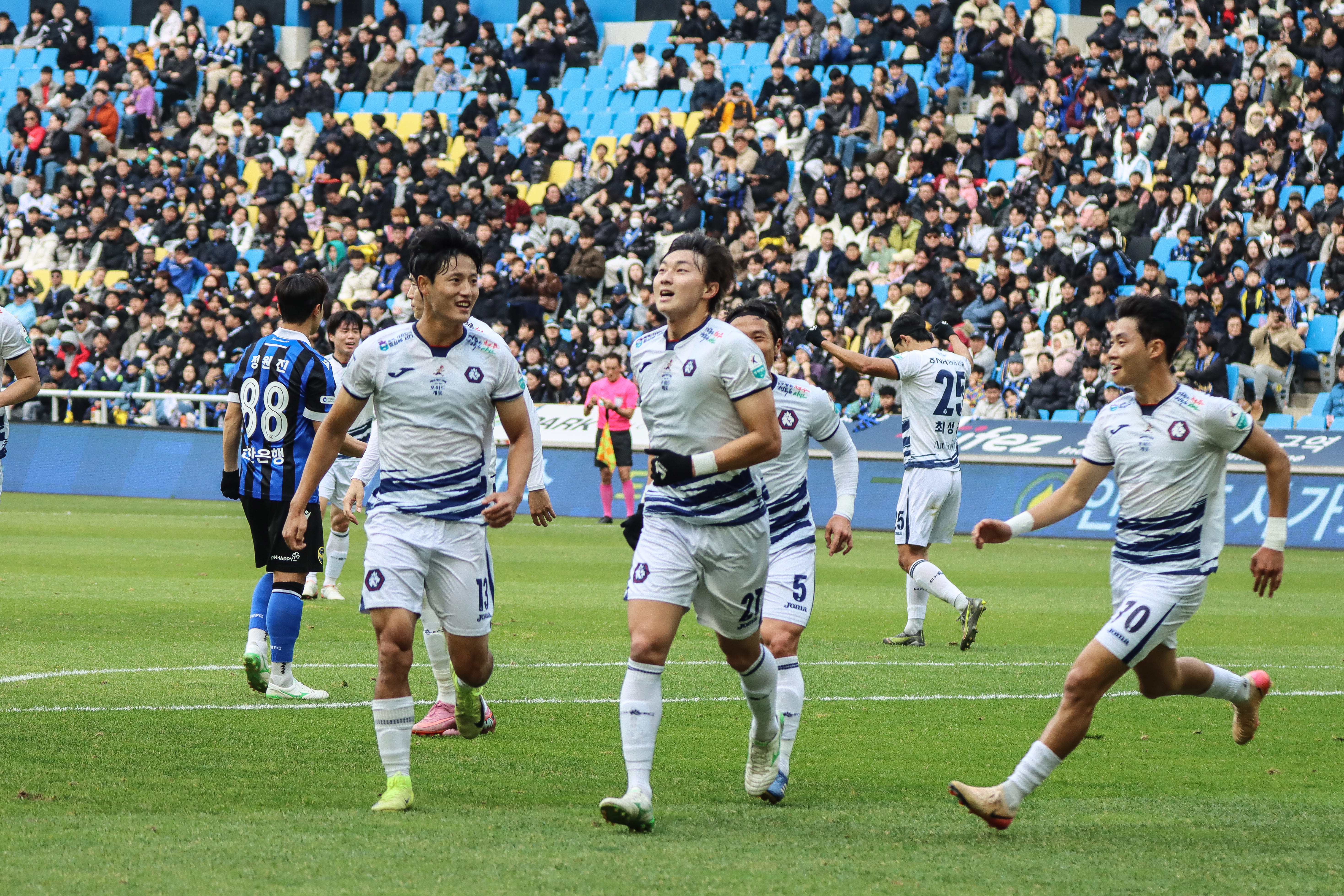 충북청주FC(이하 충북청주)가 11월 23일(일) 오후 2시 인천축구전용경기장에서 열린 ‘하나은행 K리그2 2025’ 39라운드 인천유나이티드FC(이하 인천)와의 맞대결에서 1-0으로 승리했다.