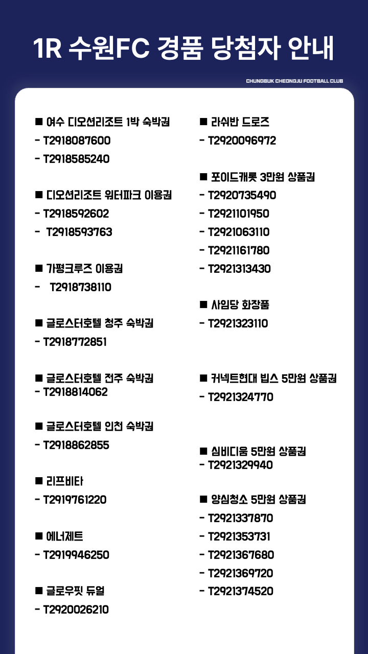 0301 1R 수원FC 경품 당첨자 안내
