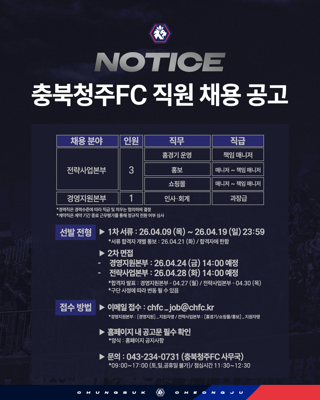 (주)충북청주프로축구단 사무국 직원 채용 공고