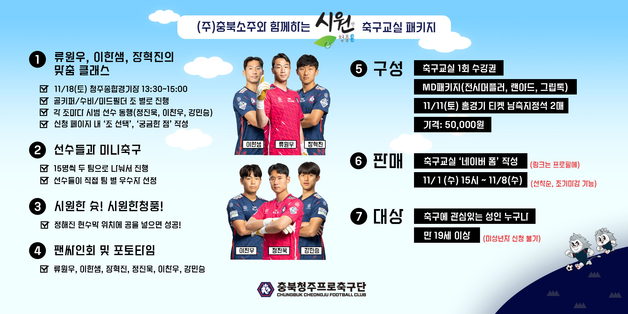 ‘프로 선수단과 맞춤 클래스 진행!’ 충북청주FC, ㈜충북소주와 함께하는 ‘시원한청풍’ 축구교실 패키지 오픈