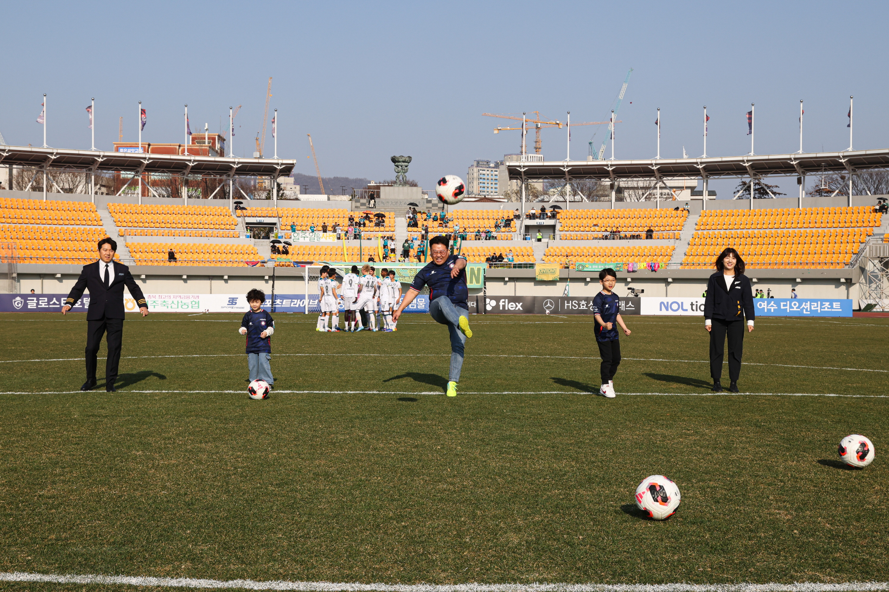 또한 협약을 기념해 에어로케이 임직원이 근무복을 착용하고 자녀와 함께 시축에 참여하며 현장의 의미를 더했다. 단순 협약을 넘어 지역 기업과 가족, 팬이 함께 어우러지는 장면을 연출하며 ‘지역 밀착형 파트너십’의 상징적인 순간을 만들었다.