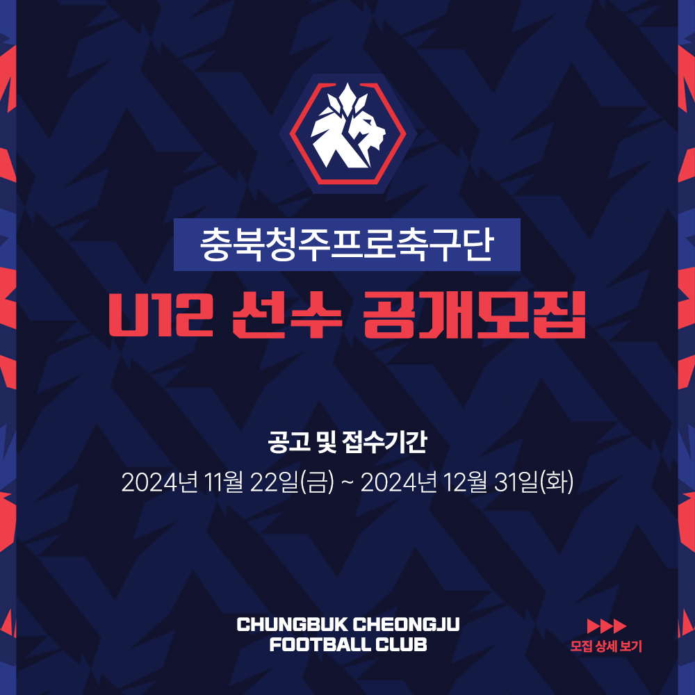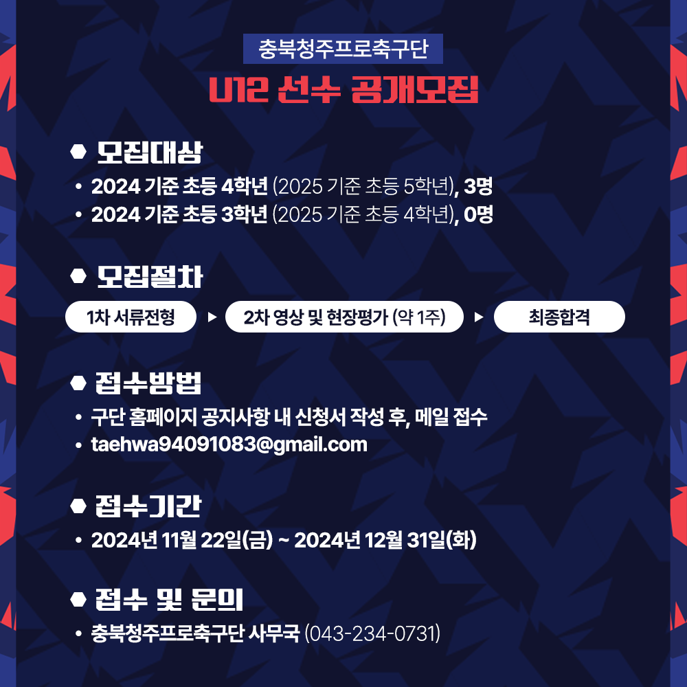 충북청주프로축구단 U18 GK 선수 공개 모집