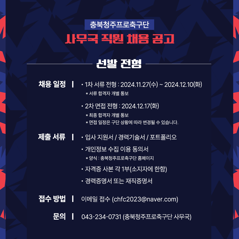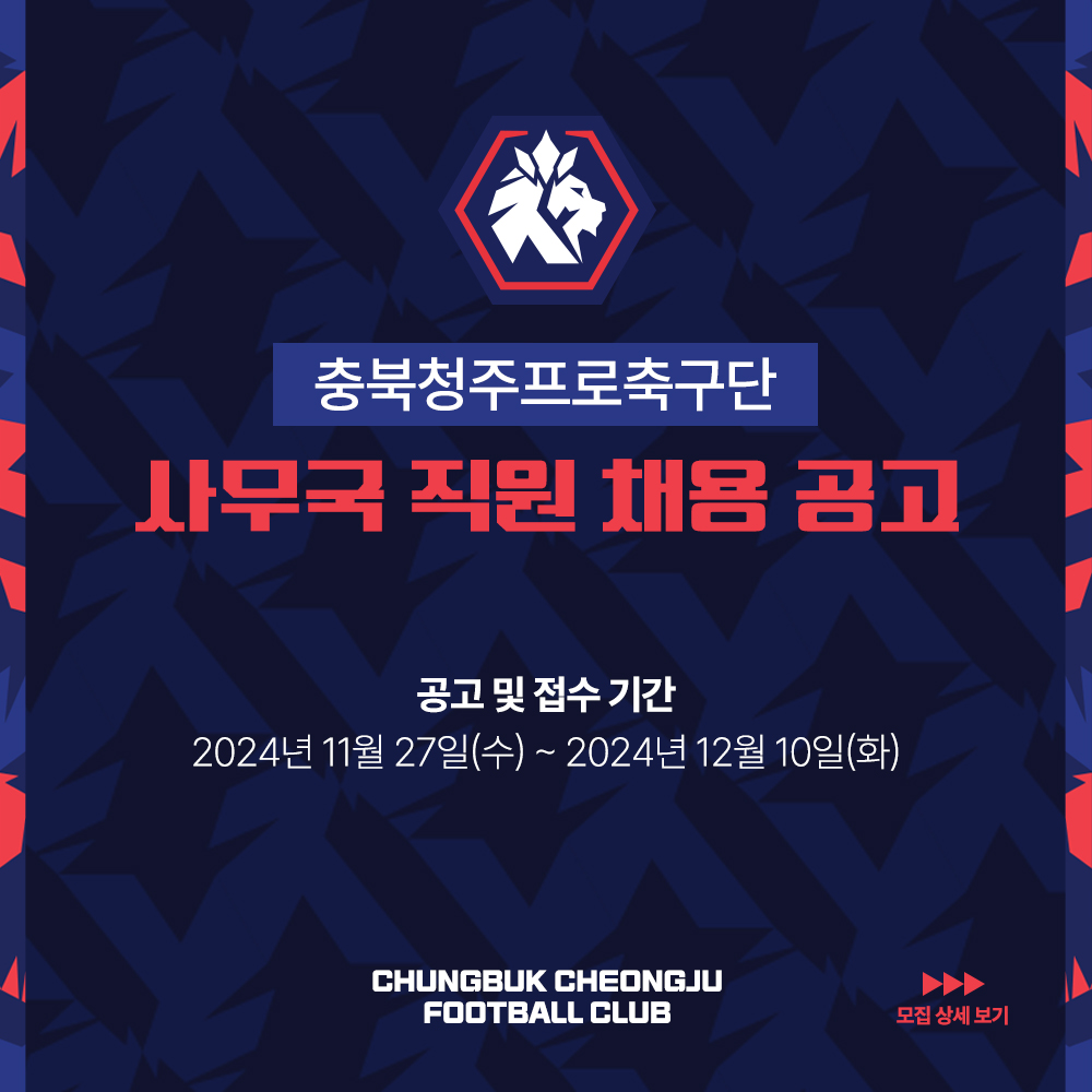 충북청주프로축구단 사무국 직원 공개 채용
