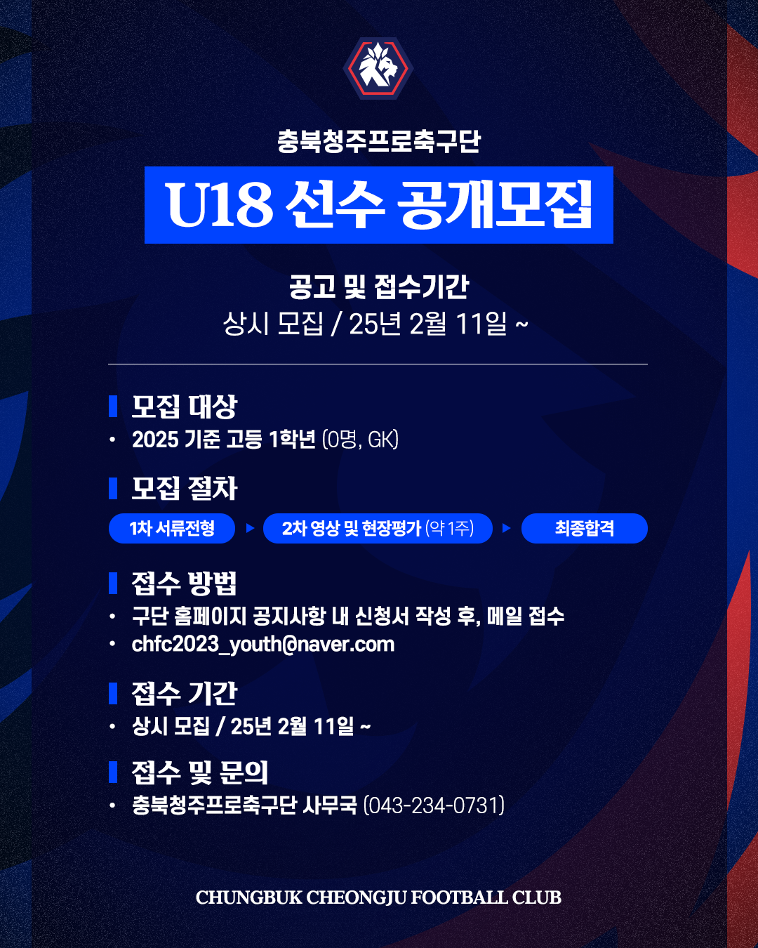 충북청주프로축구단 프로스포츠 인턴십 공개 채용