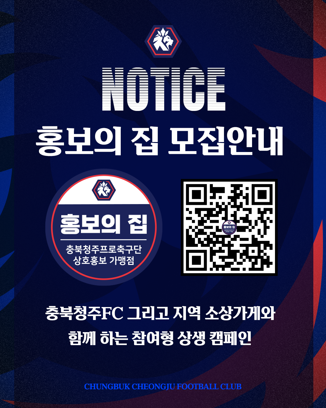 홍보의 집은 지역 소상가게와 충북청주FC가 함께하는 참여형 상생 캠페인입니다.