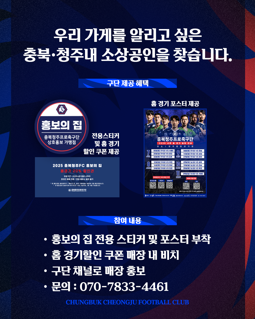 충북청주FC와 함께 우리 가게를 알리고 싶은 사장님들 주목❗