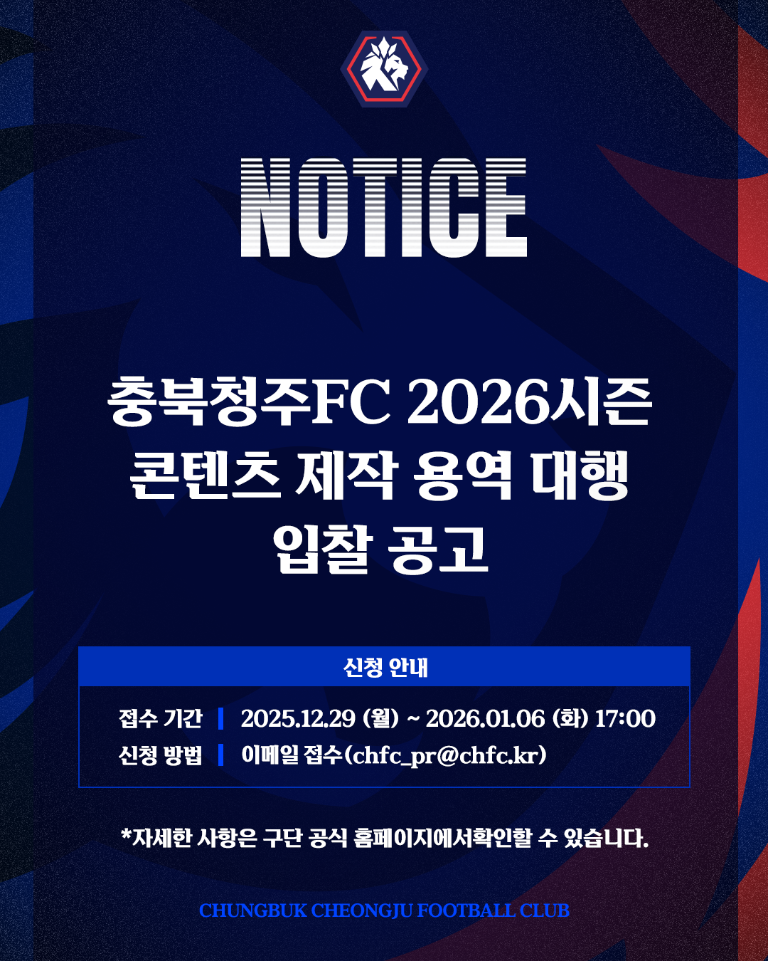 1. 사 업 명 : 충북청주FC 2026시즌 콘텐츠 제작 용역 대행